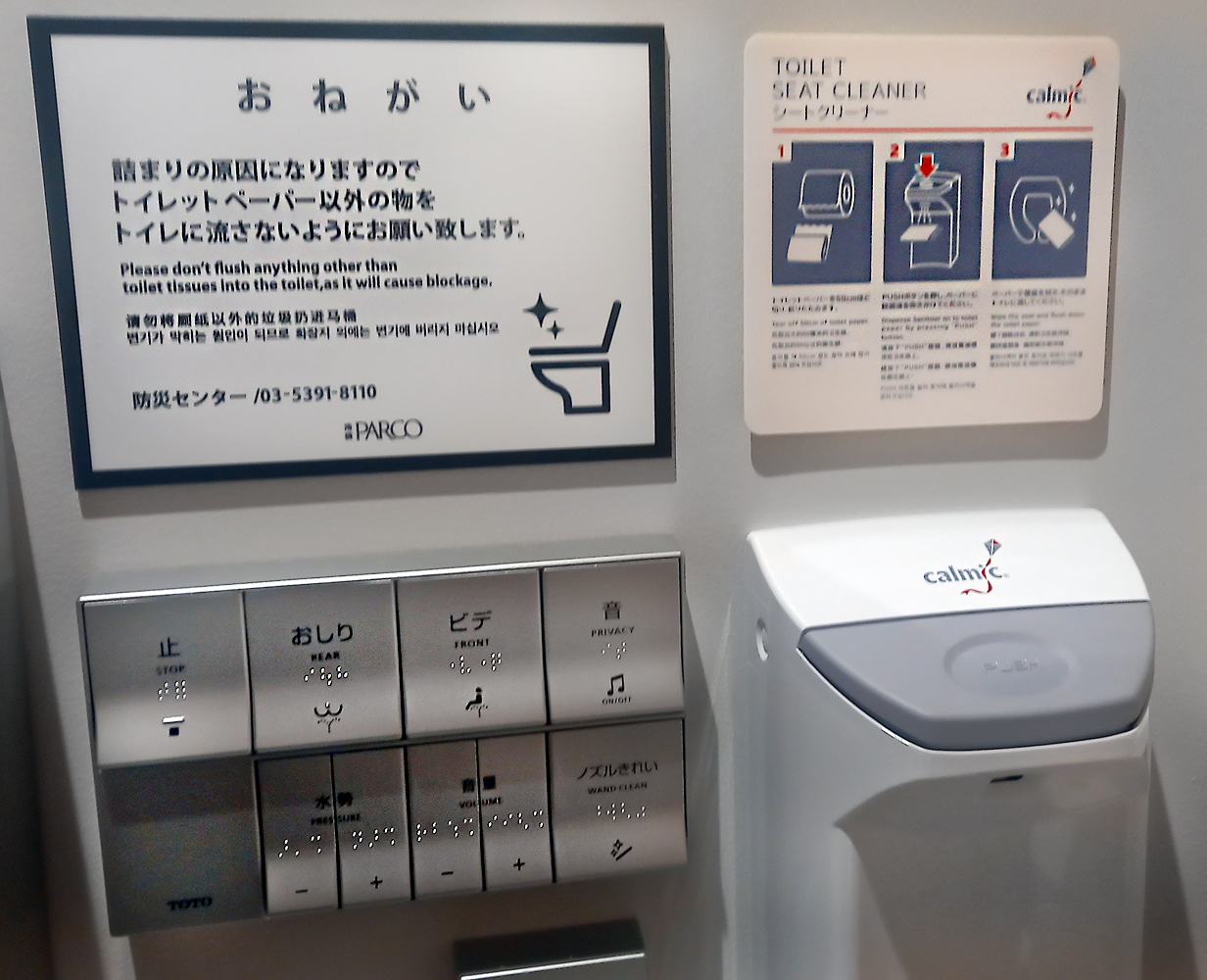 Ed eccolo qui: il bagno giapponese col famoso Washlet, un “vaso” che combina le funzioni di un wc a quelle di un bidet: