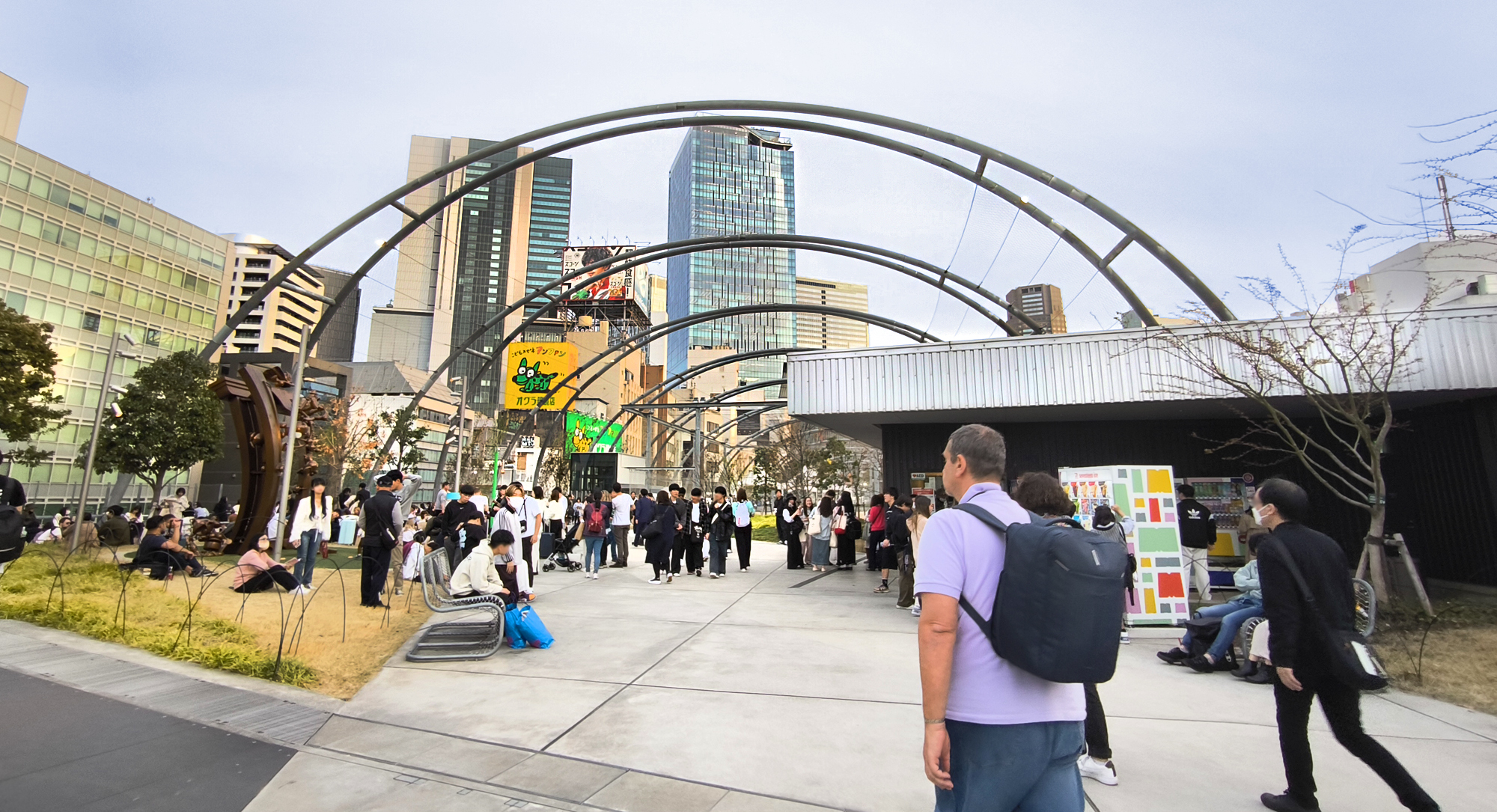 Passato un tempo sufficiente a divertirci, attraversando e riattraversando l’incrocio, ci siamo inoltrati nel quartiere, cominciando dai due grattacieli che si vedono dietro la stazione.