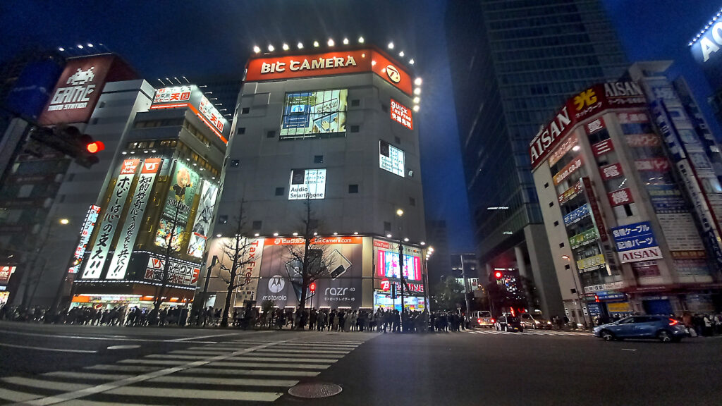 Qui siamo sotto Namco (sei piani di sale gioco e gadget, per giocatori, collezionisti e amanti degli anime o “otaku“) e Sofmap (computer, fotocamere, elettrodomestici di seconda mano o nuovi).