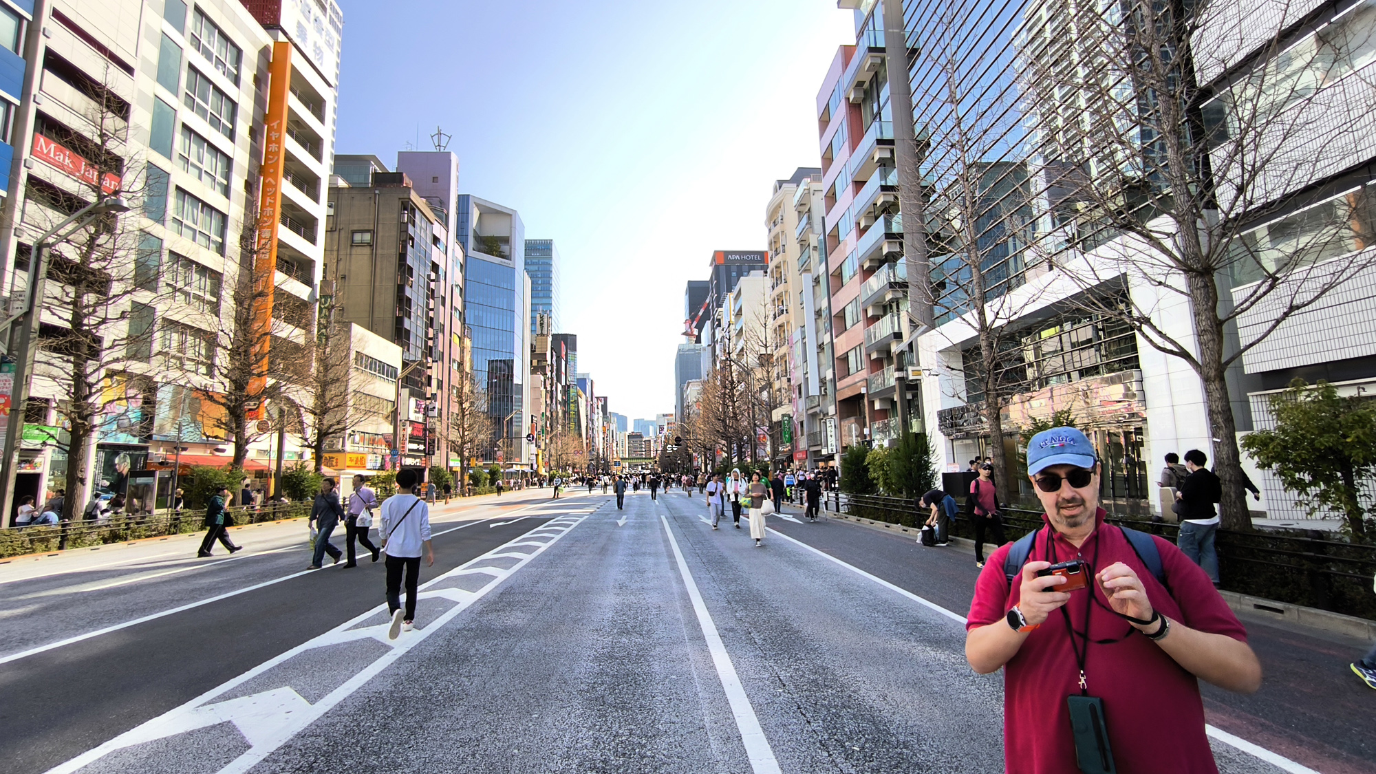 Vista la pedonalizzazione della Chuo dori, questo pomeriggio c’era un mucchio di gente in mezzo alla strada, compresi noi!