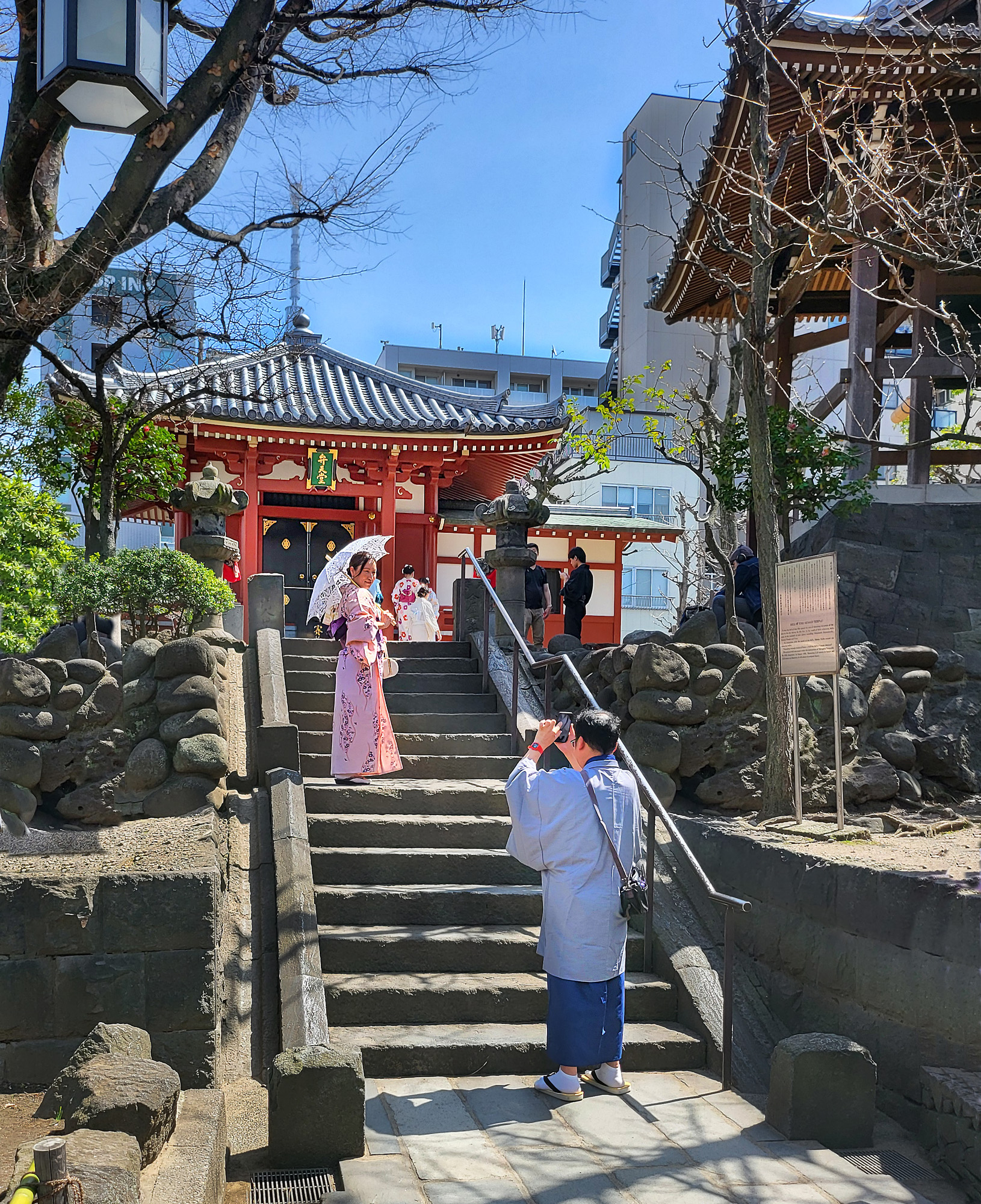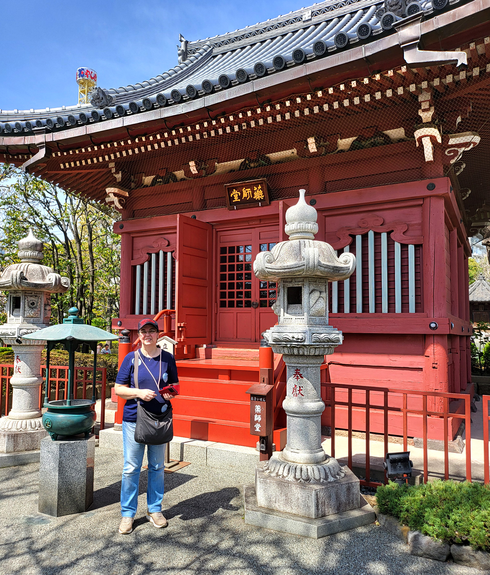 Il tempio di Senso-ji, chiamato anche Asakusa Kannon (dal sacro Bodhisattva Avalokitesvara detto Kannon) è il tempio buddista più antico di Tokyo (628 d.c.), immerso in un vasto complesso all’interno di un muro di cinta e che include, oltre al tempio principale (Sala Kannon-do), la pagoda a 5 piani e varie altre sale, un giardino giapponese ed anche … la via dello shopping, la Nakamise-dōri citata prima, con le sue due porte (Hozo-mon e Kaminari-mon).