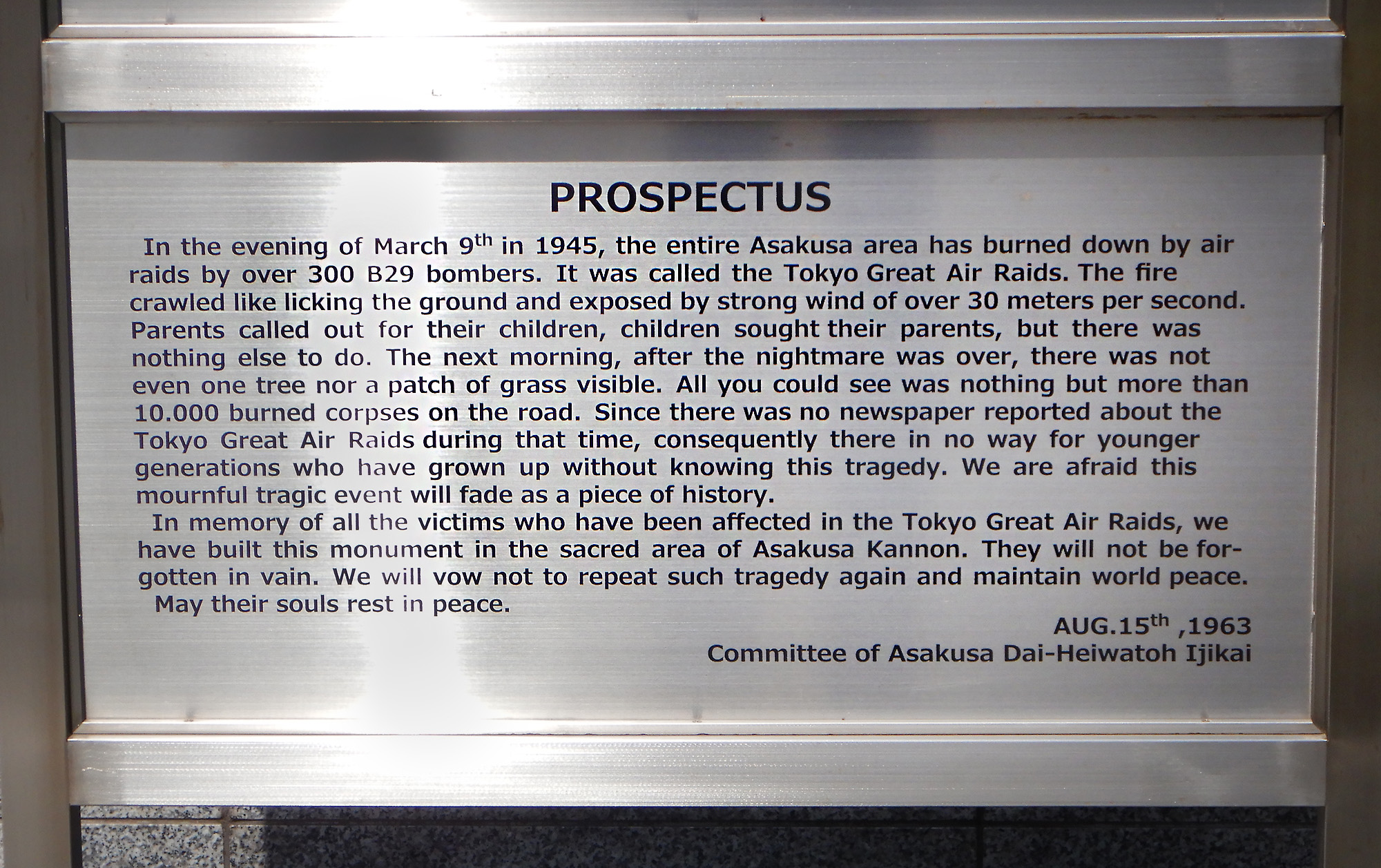 Pare che questo bombardamento su Tokyo, avvenuto la sera del 9 marzo 1945, sia stato il più distruttivo, non solo di Tokyo, ma anche di tutta la seconda guerra mondiale, superando i raid su Dresda, Amburgo, Hiroshima e Nagasaki.