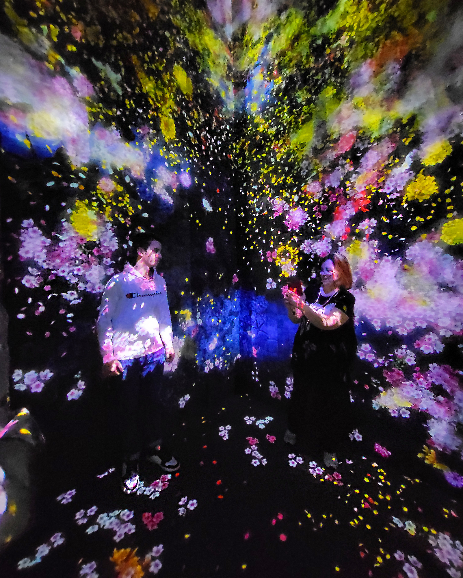 TeamLab Borderless – Flowers and People è il primo ambiente in cui ci si immerge entrando al museo.