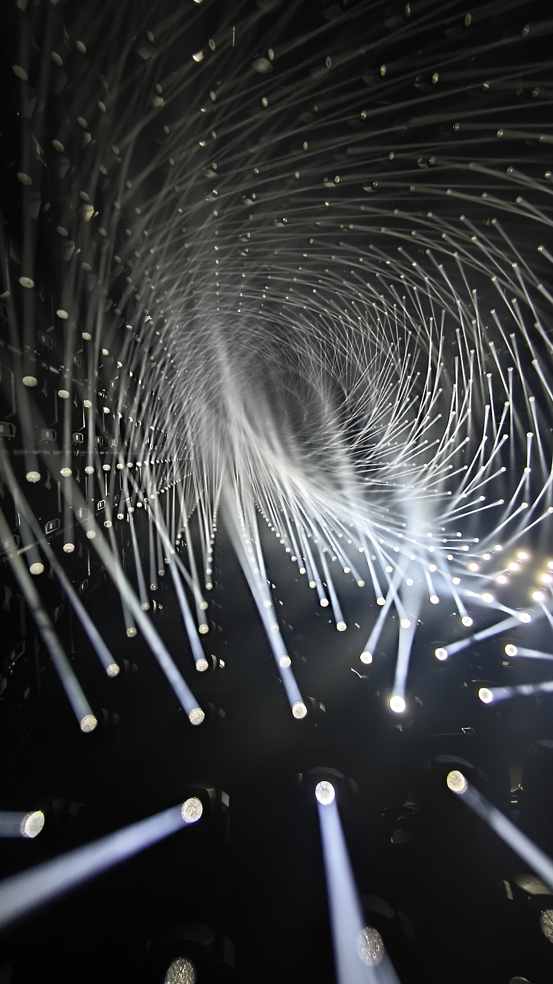 Una scultura fatta di luce ordinata che continua a fluire verso l’esterno.
