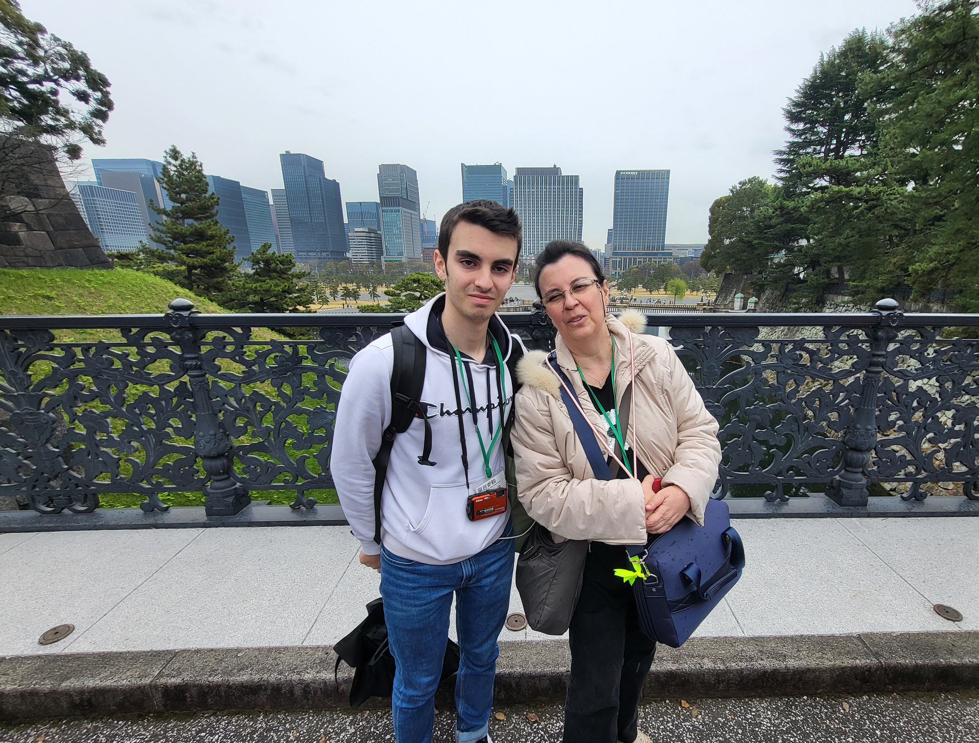 La famiglia si affaccia dalla Chōwaden Reception Hall, il grande padiglione col tetto verde che si vede nelle foto.